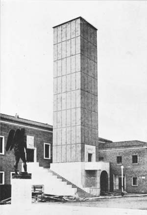 Veduta del Palazzo podestarile di Aprilia e del San Michele in una foto del 1937.